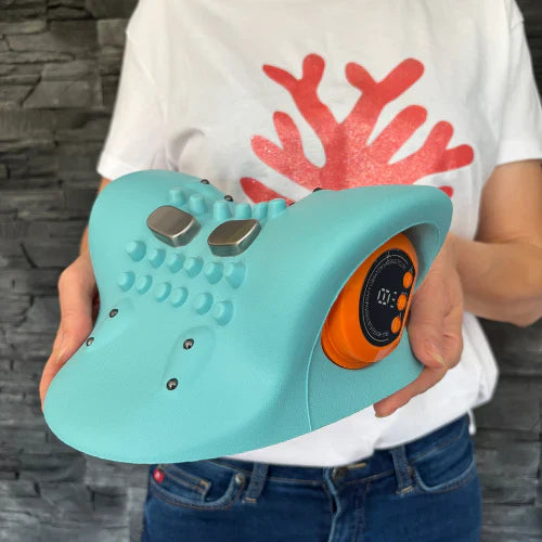 NeckRevive™ gently stretches your neck at the ideal 26° angle, reducing pressure on your spine and discs. At the same time, its EMS (electrical muscle stimulation) technology delivers mild pulses to activate muscles, boost circulation, and support natural movement.